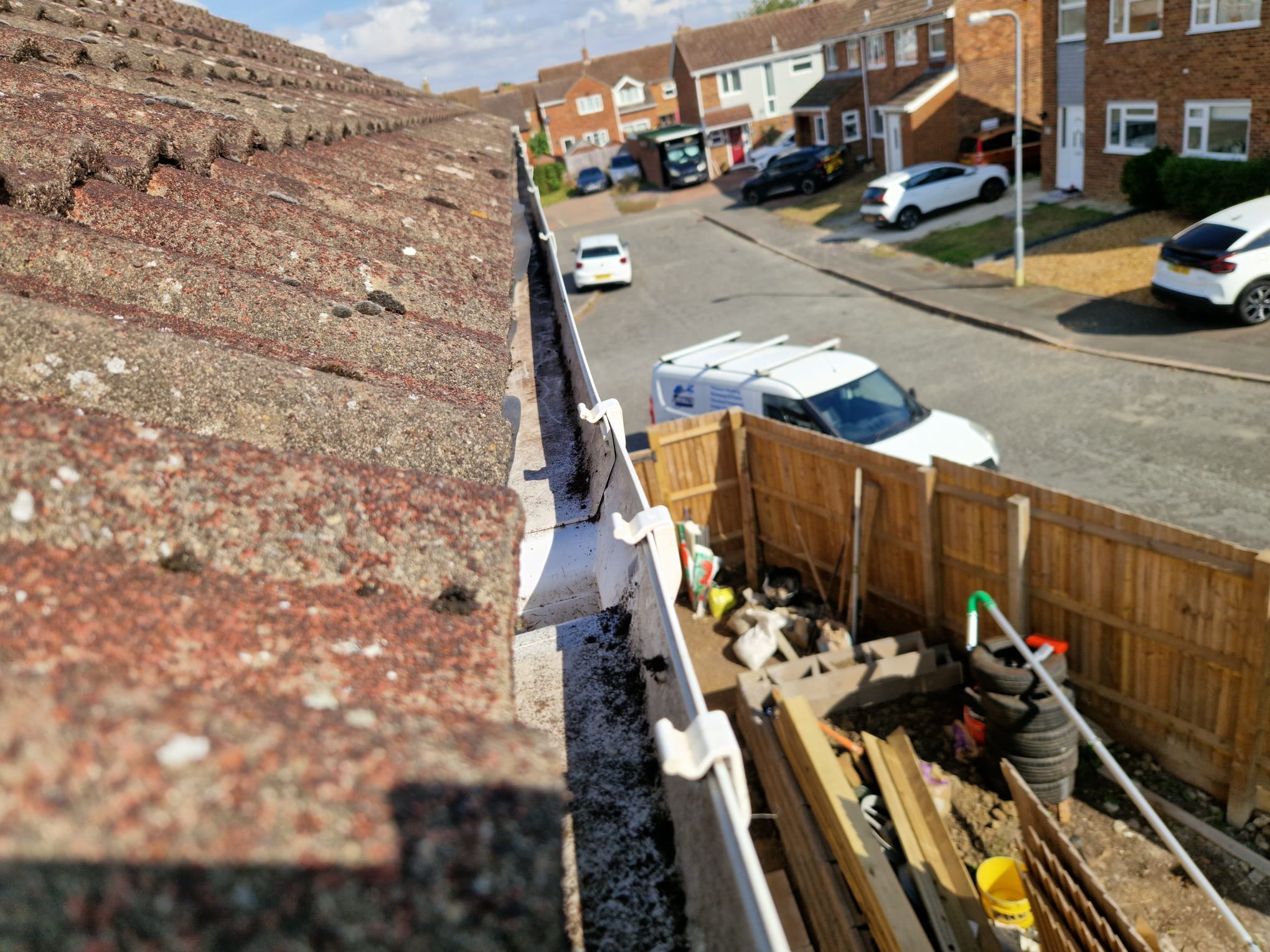Gutter vacuuming is a modern method of cleaning gutters using a powerful vacuum system and long poles. It removes leaves, moss, and debris safely without the need for ladders.